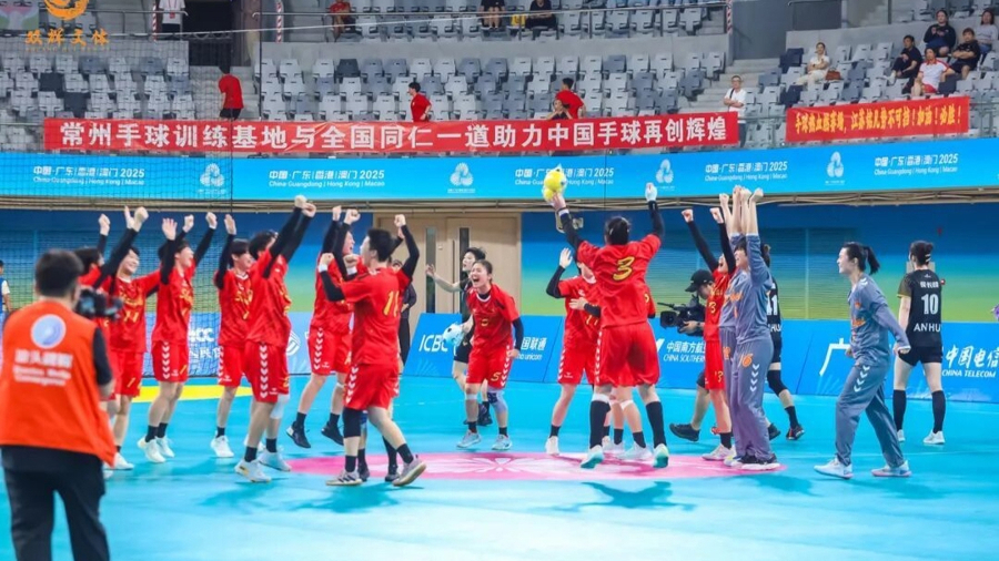 十五届全国运动会手球女子组比赛近日在广东汕头体育中心体育馆结束决赛争夺,上海队通过加时赛1分险胜安徽队摘得铜牌。