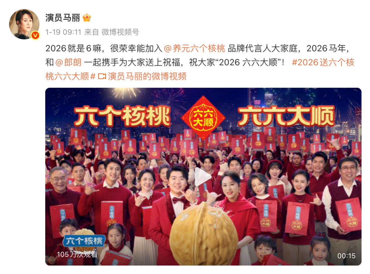 养元六个核桃牵手马丽、郎朗,“马上六六大顺”在这个春节强势破圈网络2026-01-28 13:26